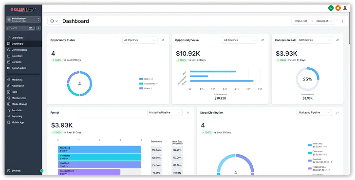 If you’re bouncing between inboxes, spreadsheets, calendars, and billing tools, it’s easy for leads to slip through the cracks. Killerspots brings your pipeline, messaging, automations, reviews, and payments together—so you spend less time chasing admin and more time closing work.